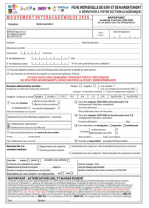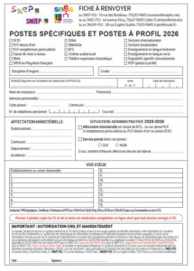 Fiches et dossier mutation Fiche syndicale Mouvement INTER 2026 Fiche syndicale Mouvement Postes Spécifiques et POP 2026 Fiche syndicale Mouvement INTRA LILLE 2025